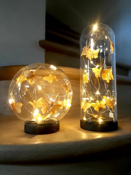 Lampe Design Bois Noir Et Doré Avec Cloche Verre - Ambiance Chaleureuse